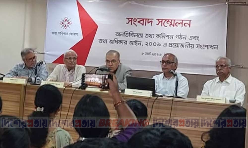রবিবার (৮ মার্চ) রাজধানীর ধানমণ্ডিতে মাইডাস সেন্টারে ‘অনতিবিলম্বে তথ্য কমিশন গঠন এবং তথ্য অধিকার আইন, ২০০৯-এ প্রয়োজনীয় সংশোধন’ শীর্ষক সংবাদ সম্মেলনে তিনি এসব কথা বলেন।