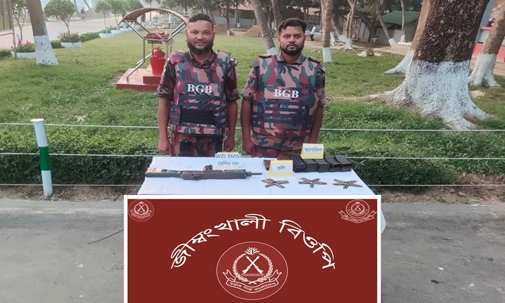 কক্সবাজারের উখিয়ায় সীমান্তবর্তী এলাকায় অভিযান চালিয়ে একটি সাবমেশিন গান (এসএমজি), গুলি ও ম্যাগাজিন উদ্ধার করেছে বিজিবি। বুধবার (৪ মার্চ) দুপুরে নাফ নদী সংলগ্ন কেওড়া বাগানে এ অভিযান পরিচালিত হয়।