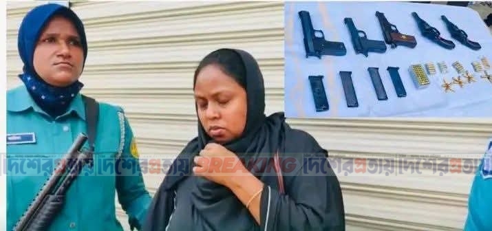 খুলনায় যৌথ অভিযানে নারী গ্রেফতার, বিদেশি অস্ত্র ও গুলি : ৩টি পিস্তল, ২টি রিভলভার, ৪টি ম্যাগজিন ও ৯৬ রাউন্ড গুলি জব্দ