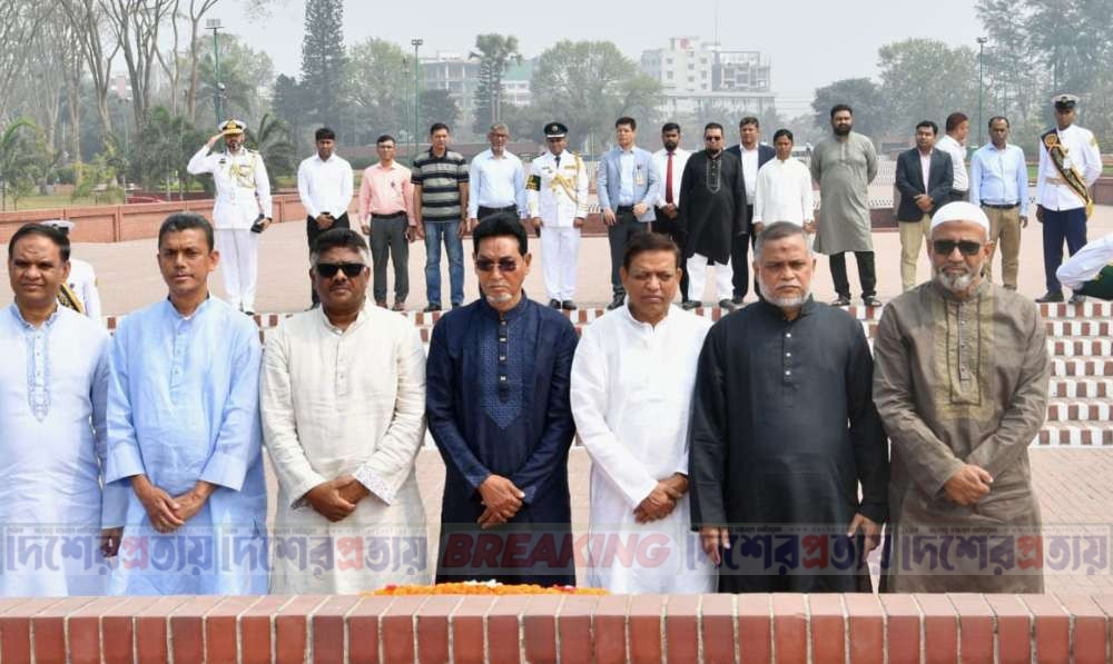 সাভার জাতীয় স্মৃতিসৌধে পুস্পস্তবক অর্পণ করে মহান মুক্তিযুদ্ধের বীর শহীদদের প্রতি গভীর শ্রদ্ধা নিবেদন করেছেন জাতীয় সংসদের চিফ হুইপ মো. নূরুল ইসলামের নেতৃত্বে হুইপবৃন্দ।