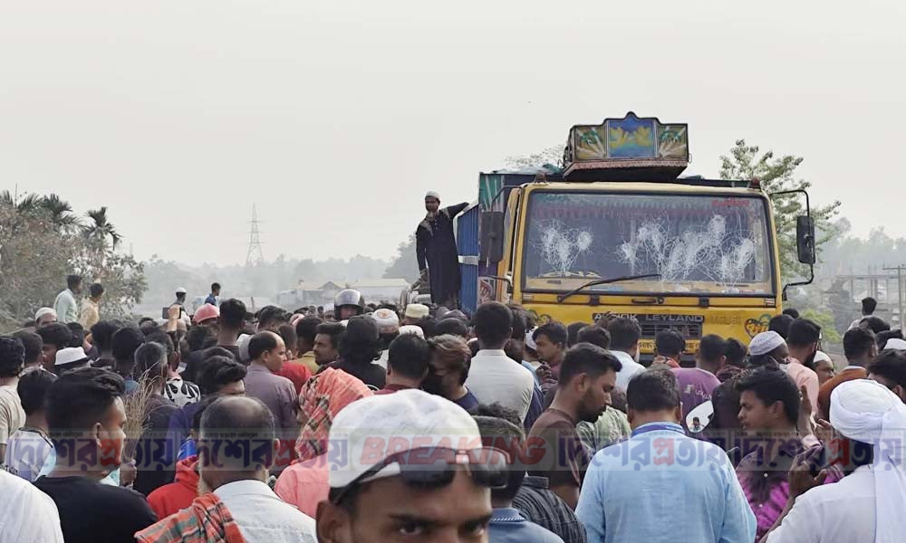 ট্রাক-মোটরসাইকেল সংঘর্ষে বাবা-ছেলের মৃত্যু, সড়ক অবরোধ
