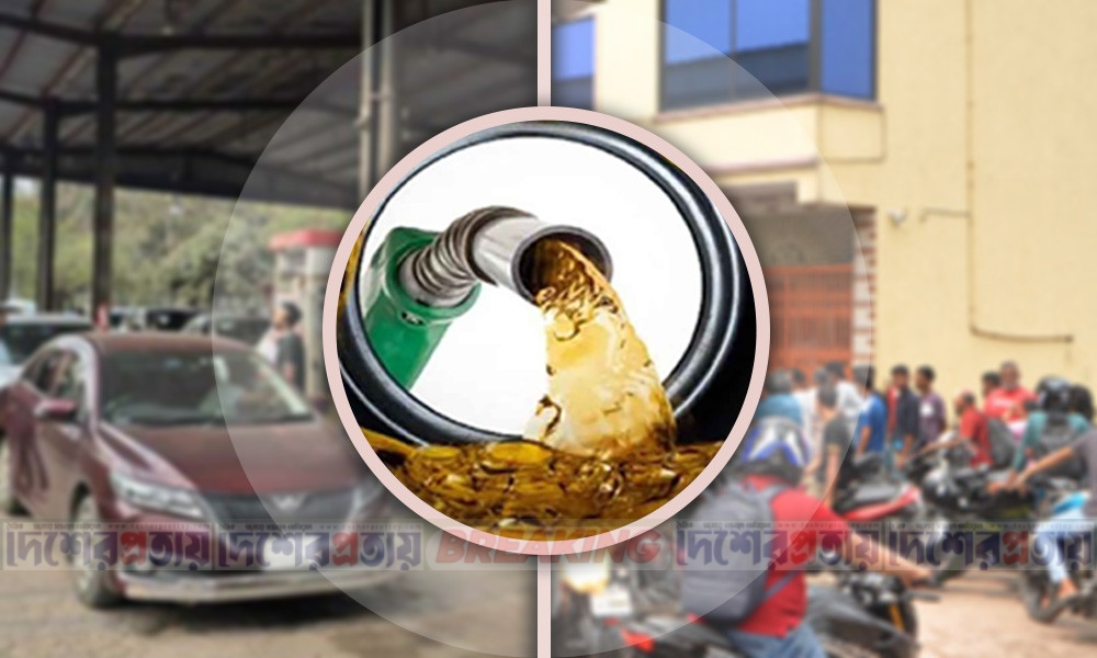 অল্প কিছু পাম্পে তেল সরবরাহ স্বাভাবিক থাকলেও কয়েক কিলোমিটার দীর্ঘ ছিল যানবাহনের সারি।