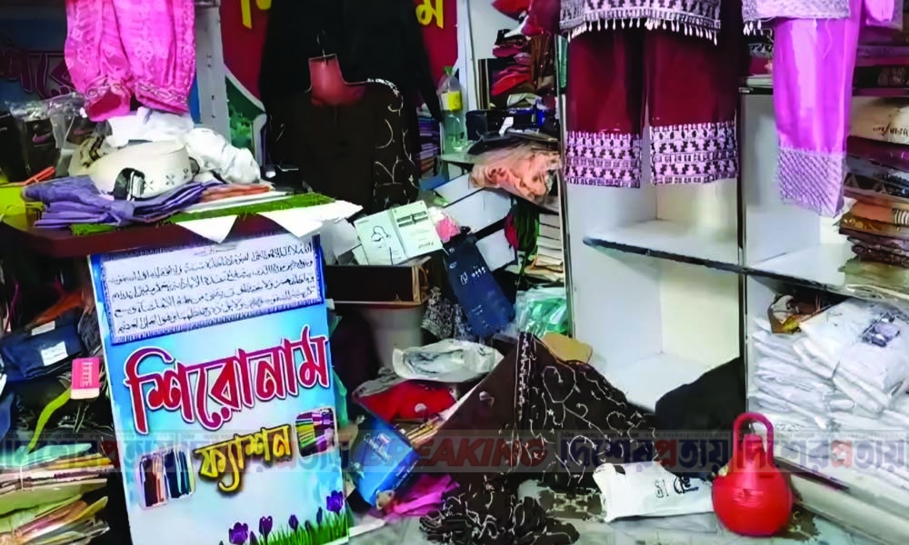 ঈদকে কেন্দ্র করে আমরা দোকানে শাড়ি, লুঙ্গি ও থ্রি পিসসহ বিপুল পরিমাণ মালামাল উঠিয়েছে। কয়েকদিনের বেচাবিক্রির টাকাও ক্যাশে ছিল। দোকানের তালা ভেঙে আমাদের নগদ অর্থসহ প্রায় ২৬ লাখ টাকার মালামাল নিয়ে গেছে। আমাদের নিঃস্ব করে দেওয়া হয়েছে।