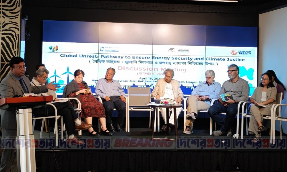 শনিবার (১৮ এপ্রিল) রাজধানীর একটি হোটেলে ধরিত্রী রক্ষায় আমরা (ধরা), ওয়াটারকিপার্স বাংলাদেশ (ডব্লিউকেবি), এশিয়ান পিপলস মুভমেন্ট অন ডেট অ্যান্ড ডেভেলপমেন্ট (এপিএমডিডি) এবং ফসিল ফুয়েল ট্রিটি (এফএফটি) ইনিশিয়েটভ আয়োজিত আলোচনাসভায় এসব কথা বলেন তারা।
