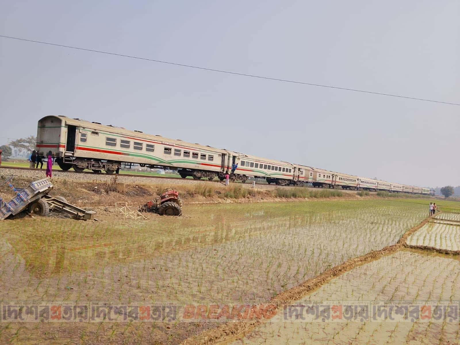 পার্বতীপুরে ট্রেনের সাথে ট্রাক্টরের সংঘর্ষ, অল্পের জন্য রক্ষা