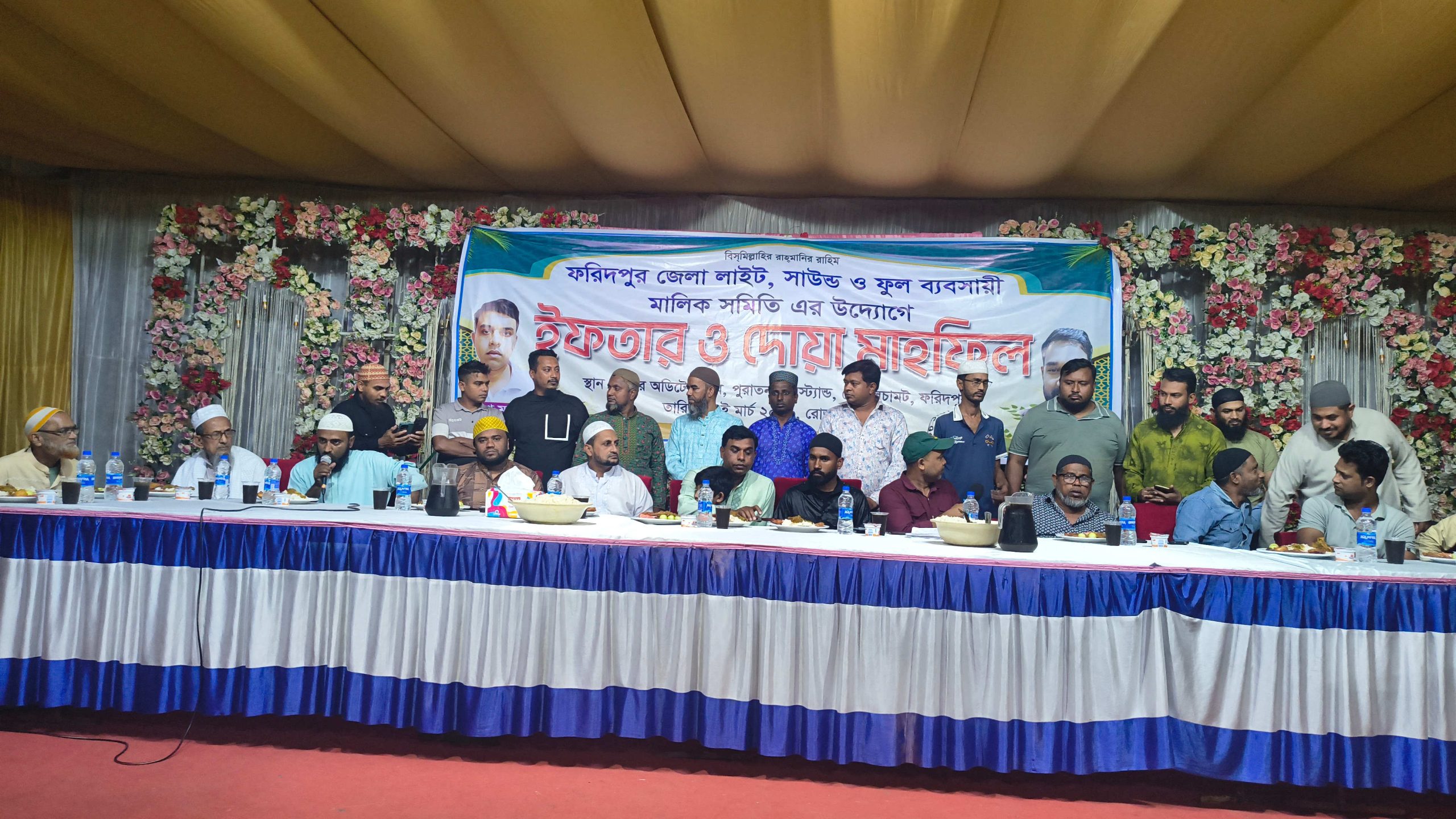 পবিত্র মাহে রমজান উপলক্ষে ফরিদপুর জেলা লাইট, সাউন্ড ও ফুল ব্যবসায়ী মালিক সমিতির উদ্যোগে ইফতার ও দোয়া মাহফিল অনুষ্ঠিত হয়েছে।
