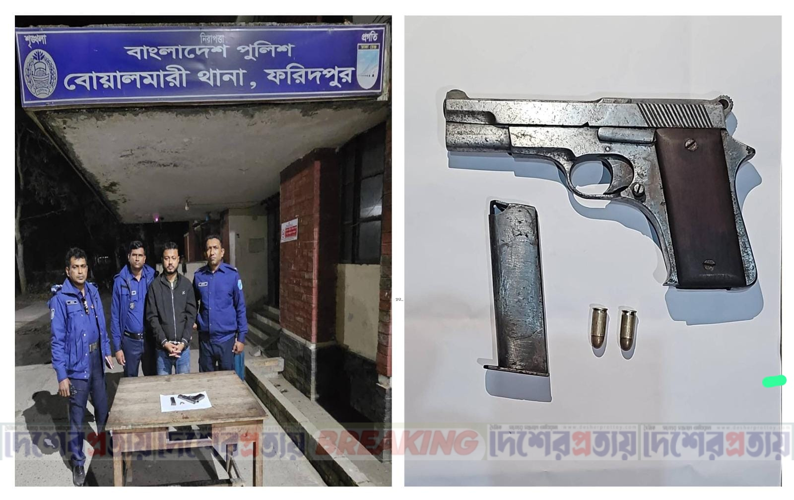 ফরিদপুর বোয়ালমারী উপজেলা এলাকায় যৌথ অভিযানে আসামি সহ পিস্তল উদ্ধার
