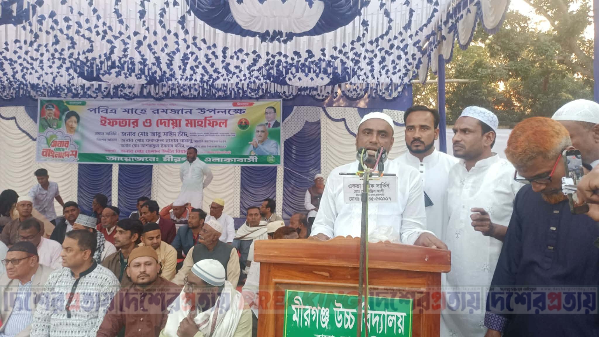 মীরগঞ্জ এলাকাবাসীর আয়োজনে এই অনুষ্ঠানে স্থানীয় গণ্যমান্য ব্যক্তিবর্গ ও সর্বস্তরের সাধারণ মানুষ অংশ নেন। ইফতারের পূর্বে দেশ, জাতি এবং মুসলিম উম্মাহর শান্তি ও সমৃদ্ধি কামনা করে বিশেষ মোনাজাত করা হয়।
