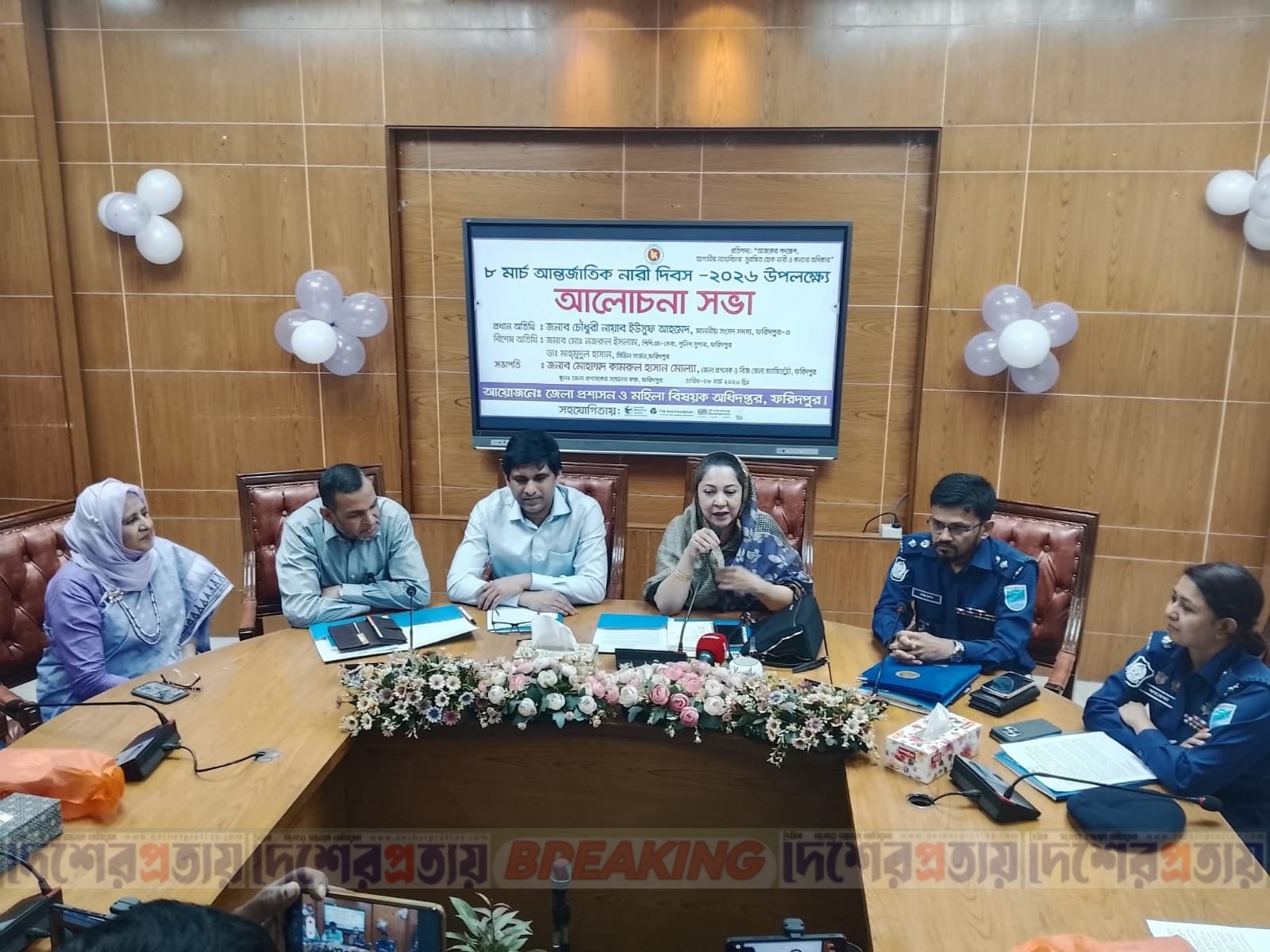 জেলা প্রশাসক কামরুল হাসান মোল্লার সভাপতিত্বে অনুষ্ঠিত আলোচনা সভায় প্রধান অতিথি হিসেবে উপস্থিত ছিলেন ফরিদপুর-৩ (সদর) আসনের সংসদ সদস্য চৌধুরী নায়াব ইউসুফ। বিশেষ অতিথি হিসেবে উপস্থিত ছিলেন ফরিদপুরের পুলিশ সুপার নজরুল ইসলাম, অতিরিক্ত পুলিশ সুপার ফাতেমা ইসলাম, সিভিল সার্জন ডা. মাহমুদুল হাসান, এফডিএফ-এর উপদেষ্টা আশরাফুল ইসলাম, টিআইবি’র সহ-সভাপতি মনোয়ারা মোরশেদ, জান্নাতুল তাহিয়া রেভি, তাহসিন জেবা ও জান্নাতুল খাতুন। অনুষ্ঠানে স্বাগত বক্তব্য রাখেন মহিলা বিষয়ক অধিদপ্তরের উপ-পরিচালক মাশউদা হোসেন।