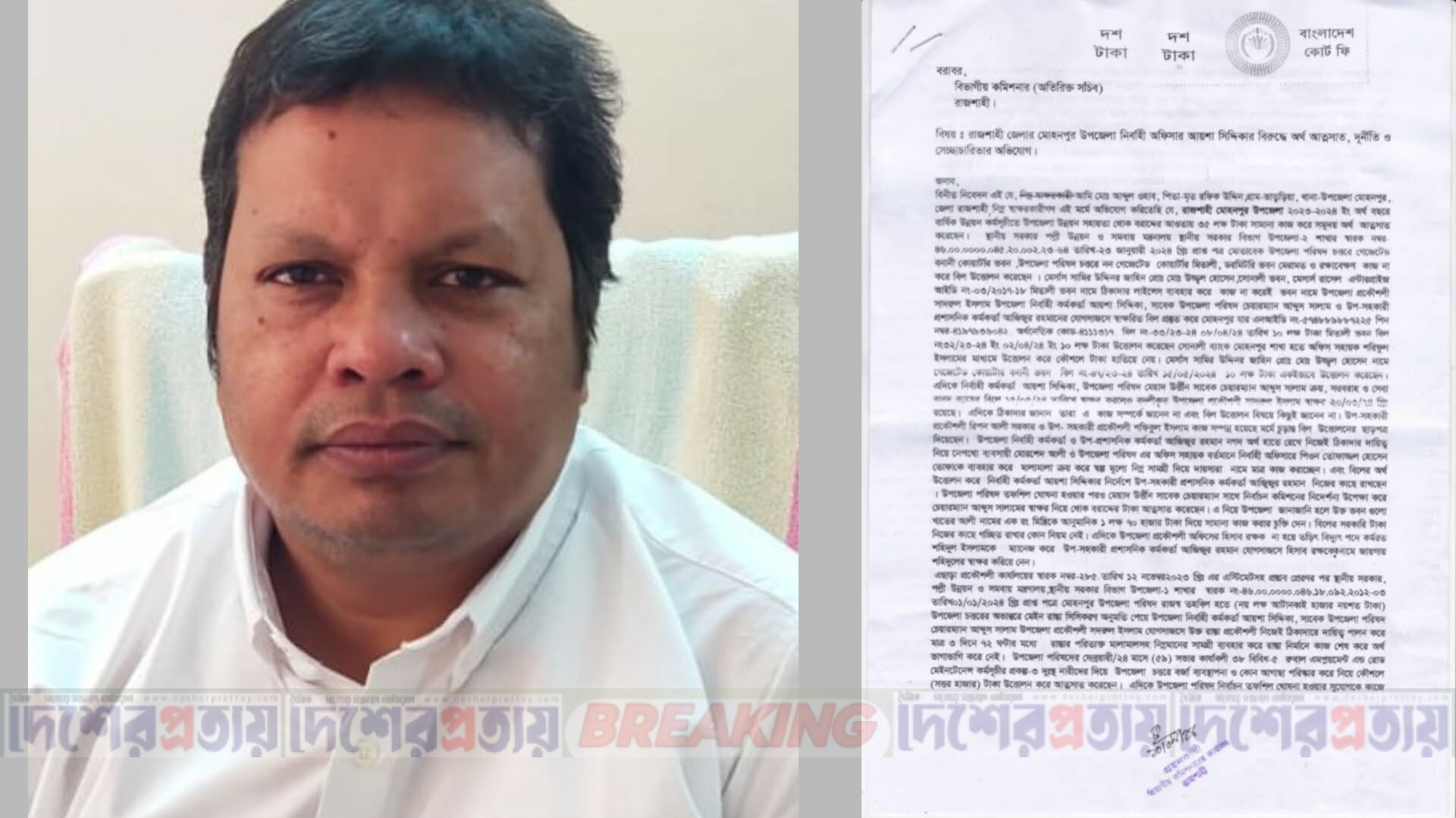 জানা গেছে, ২০২৪ সালের ১০ জুন ভাতুড়িয়া গ্রামের আব্দুল ওহাব নামের এক ব্যক্তি জেলা প্রশাসক ও বিভাগীয় কমিশনার বরাবর সাদরুল ইসলামের বিরুদ্ধে লিখিত অভিযোগ দায়ের করেন।