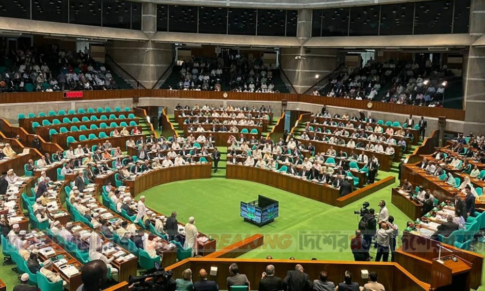 পূর্বনির্ধারিত সূচি অনুযায়ী, বৃহস্পতিবার সকাল ১১টায় সংসদের প্রথম অধিবেশন শুরু হয়।শুরুতে ড. খন্দকার মোশাররফ হোসেনের সভাপতিত্বে স্পিকার ও ডেপুটি স্পিকার নির্বাচন অনুষ্ঠিত হয়। প্রধানমন্ত্রী ও সংসদ নেতা তারেক রহমান স্পিকার হিসেবে মেজর (অব.) হাফিজ উদ্দিন আহমদের নাম প্রস্তাব করলে তা কণ্ঠভোটে সমর্থিত হয়। একইভাবে ডেপুটি স্পিকার হিসেবে ব্যারিস্টার কায়সার কামালের নাম ঘোষণা করা হয়। নির্বাচনের পর রাষ্ট্রপতি মো. সাহাবুদ্দিন নবনির্বাচিত স্পিকার ও ডেপুটি স্পিকারকে শপথ বাক্য পাঠ করান।