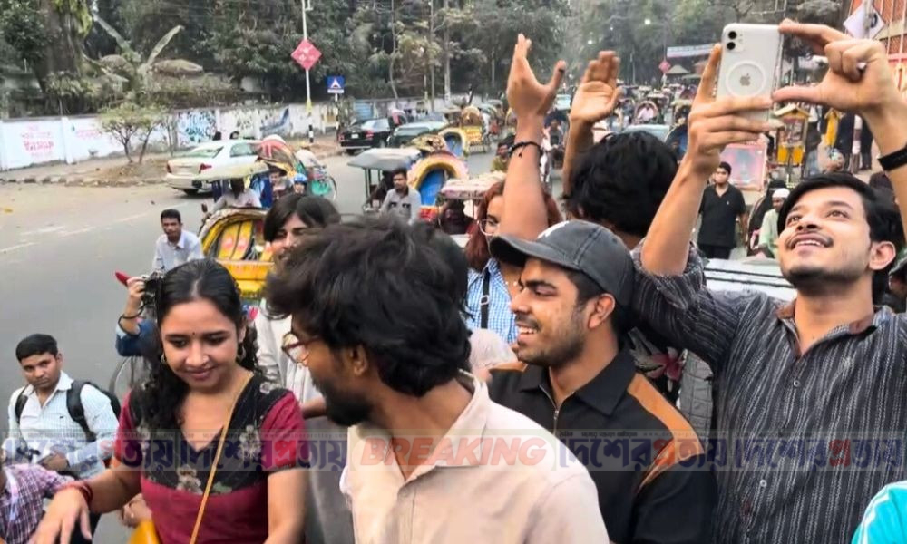 ‘সব রাজাকার ভেসে যাবে বঙ্গোপসাগরে’ গানে ঢাবি শিক্ষার্থীদের নাচ