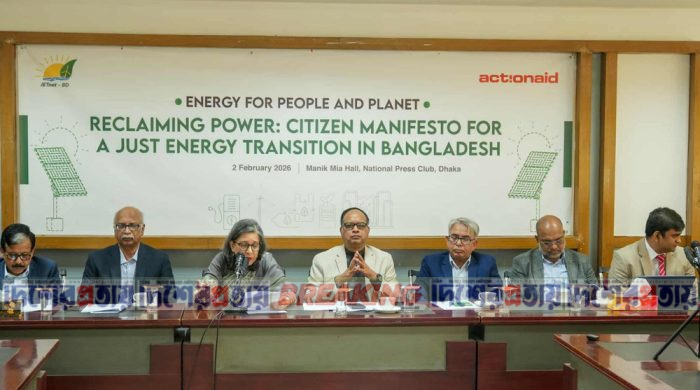 বাংলাদেশের জ্বালানি খাতে আমদানিনির্ভর জীবাশ্ম জ্বালানির ওপর ক্রমবর্ধমান চাপ কমানো এবং জ্বালানি সার্বভৌমত্ব নিশ্চিতের লক্ষ্যে একশনএইড বাংলাদেশ ও জাস্ট এনার্জি ট্রানজিশন নেটওয়ার্ক বাংলাদেশ (জেটনেট-বিডি) ১৪ দফা নাগরিক ইশতেহার ঘোষণা করেছে।