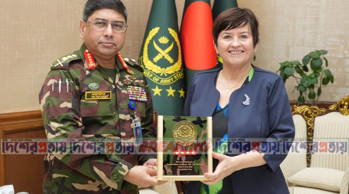 বাংলাদেশ সেনাবাহিনীর প্রধান জেনারেল ওয়াকার-উজ-জামানের সঙ্গে বাংলাদেশে নিয়োজিত চেক প্রজাতন্ত্রের অনাবাসিক রাষ্ট্রদূত ড. এলিসকা জিগোভার নেতৃত্বে একটি প্রতিনিধিদল সৌজন্য সাক্ষাৎ করেছেন। বুধবার (২৮ জানুয়ারি) সেনা সদরে এই সৌজন্য সাক্ষাৎ অনুষ্ঠিত