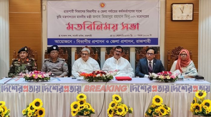 রাজশাহীর বিভাগীয় ও জেলা পর্যায়ের কর্মকর্তাদের সঙ্গে মতবিনিময় সভায় প্রশাসনকে সততা, দক্ষতা ও সাংবিধানিক দায়িত্ববোধ নিয়ে কাজ করার নির্দেশ দিয়েছেন ভূমি মন্ত্রণালয়ের মন্ত্রী মিজানুর রহমান মিনু এমপি। শুক্রবার (২০ ফেব্রুয়ারি)