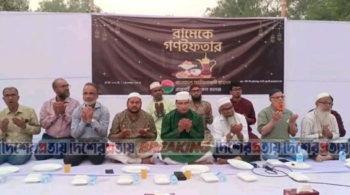 পবিত্র মাহে রমজান উপলক্ষে রাজশাহী মেডিকেল কলেজ (রামেক) শাখা ছাত্রদলের উদ্যোগে দোয়া ও গণ-ইফতার মাহফিল অনুষ্ঠিত হয়েছে। বৃহস্পতিবার (৫ মার্চ) বিকেলে কলেজের শহীদ বীর মুক্তিযোদ্ধা কাজী নুরন্নবী ছাত্রাবাস মাঠে আয়োজিত read more