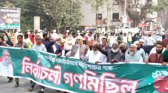 ফরিদপুরে ১০ দলীয় জোটের উদ্যোগে দাড়িপাল্লার পক্ষে নির্বাচনী গণমিছিল অনুষ্ঠিত আসন্ন ত্রয়োদশ জাতীয় সংসদ নির্বাচনকে সামনে রেখে ফরিদপুরে ১০ দলীয় জোটের উদ্যোগে দাড়িপাল্লা প্রতীকের পক্ষে একটি বিশাল নির্বাচনী গণমিছিল অনুষ্ঠিত