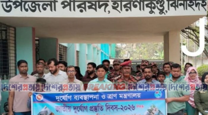 হরিণাকুন্ডু’তে জাতীয় দুর্যোগ প্রস্তুতি দিবস পালিত হয়েছে সারাদেশের ন্যায় যথাযথ মর্যাদায় ঝিনাইদহ জেলার হরিণাকুন্ডুতে পালিত হয়েছে ১০’ই মার্চ মঙ্গলবার সকাল ১১ঘটিকার সময় জাতীয় দুর্যোগ প্রস্তুতি দিবস-২০২৬। দুর্যোগ প্রস্তুতিতে লড়ব,তারুণ্যের বাংলাদেশ